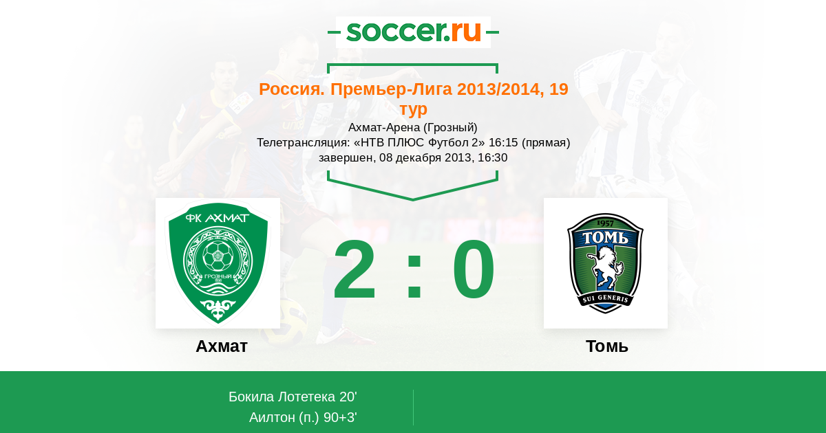 Грозный, Ахмат-Арена Телетрансляция: "НТВ ПЛЮС Футбол 2" 16:15 (прямая)