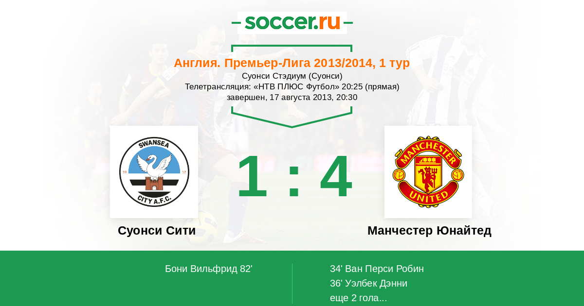 Суонси, Суонси Стэдиум Телетрансляция: "НТВ ПЛЮС Футбол" 20:25 (прямая)