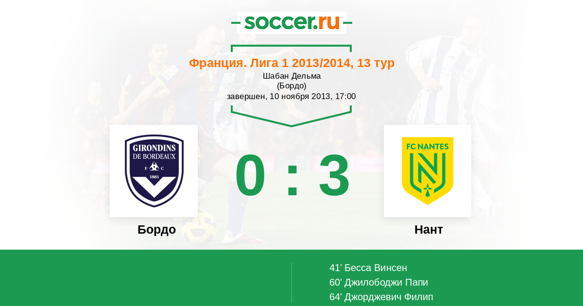 | Нант | 40:60 | 25:26 | 15:34 |