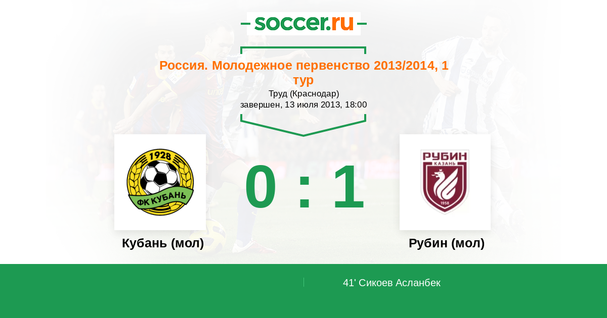 | Кубань (мол) | 10:16 | 3:4 | 7:12 |