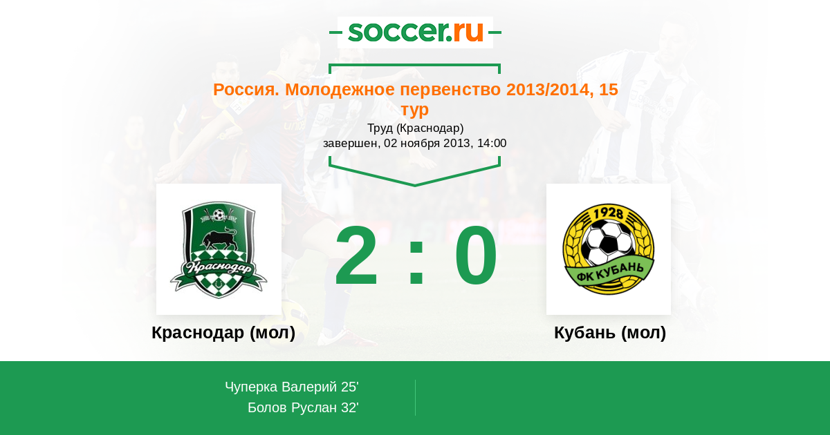 | Кубань (мол) | 12:11 | 6:4 | 6:7 |