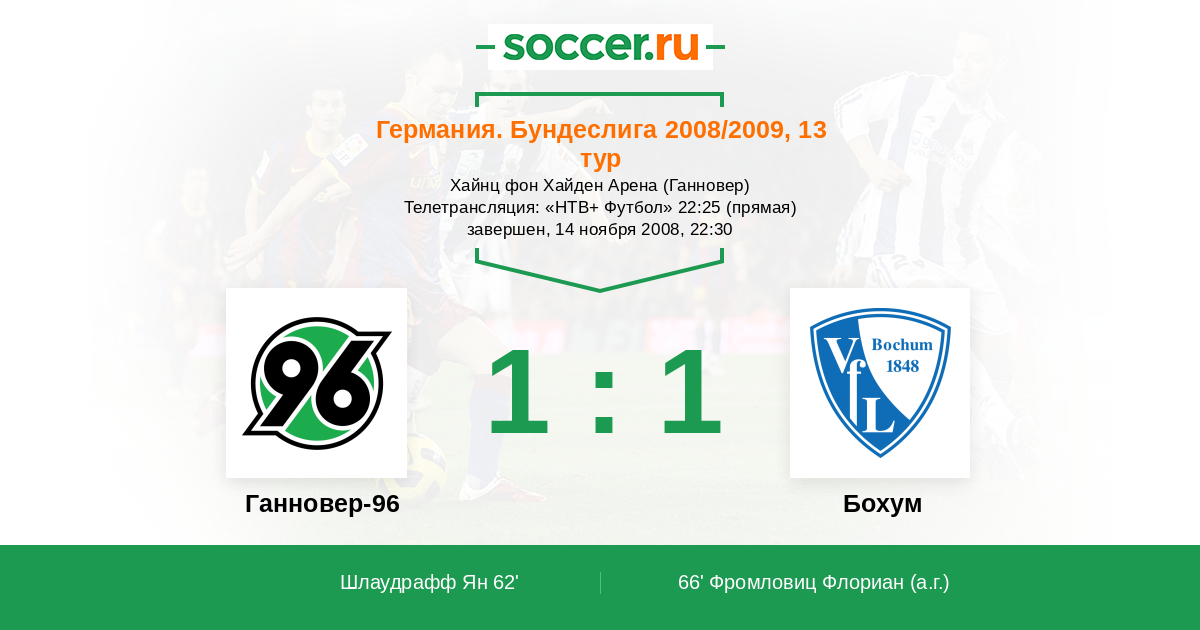 Ганновер, Хайнц фон Хайден Арена, зрителей: 30827 Телетрансляция: "НТВ+ Футбол" 22:25 (прямая)