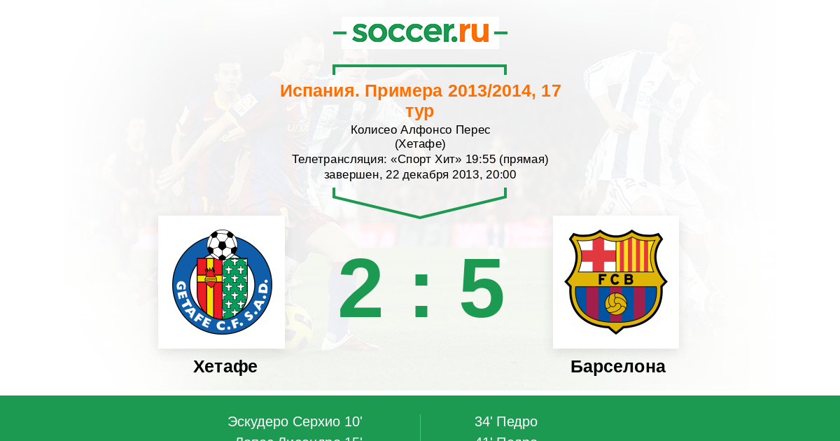 Хетафе, Колисео Алфонсо Перес Телетрансляция: "Спорт Хит" 19:55 (прямая)
