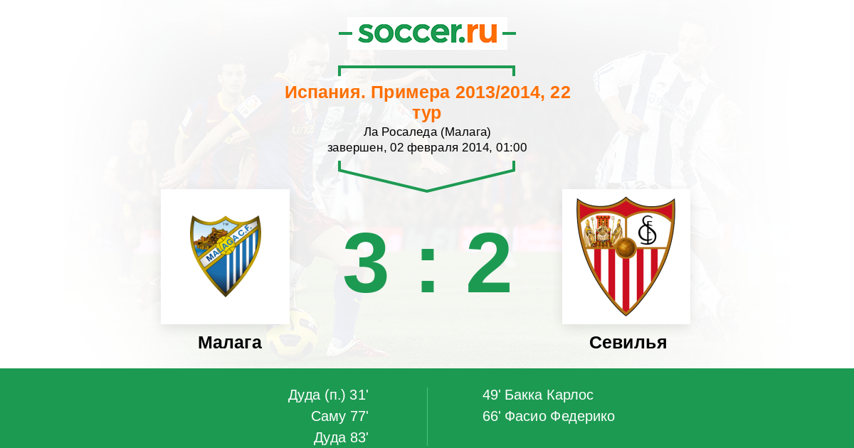 | Малага | 44:50 | 22:24 | 22:26 |