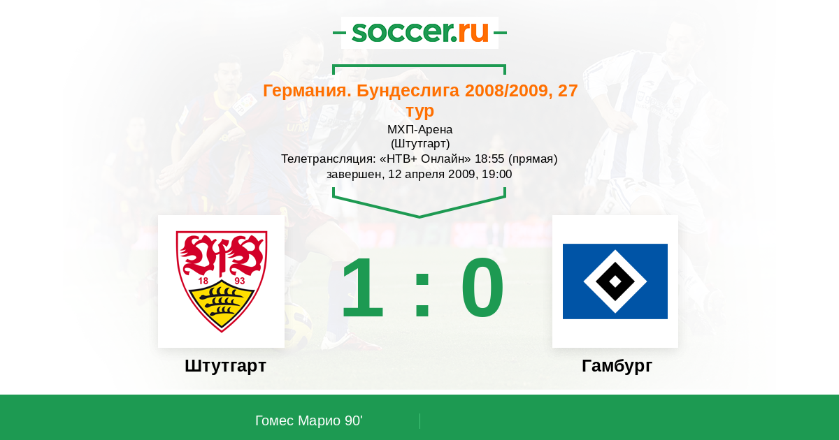 Штутгарт, МХП-Арена Телетрансляция: "НТВ+ Онлайн" 18:55 (прямая)