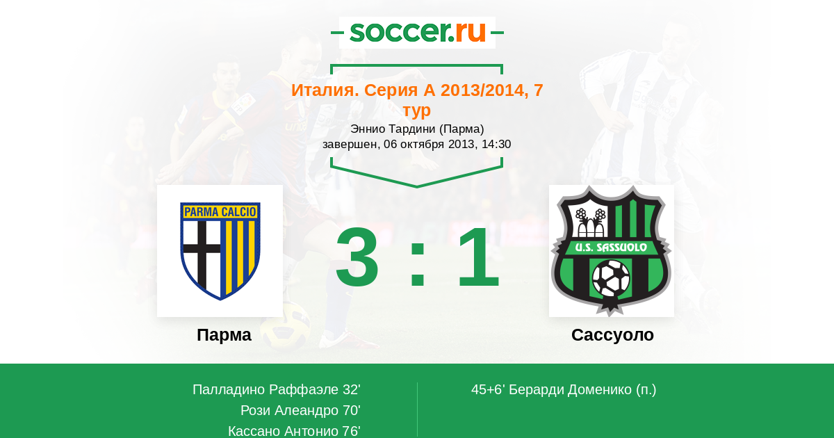 | Сассуоло | 16:14 | 8:7 | 8:7 |