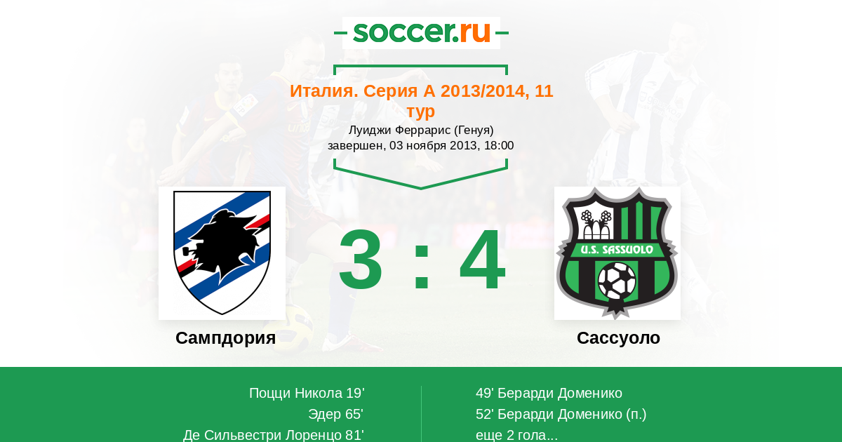 | Сампдория | Сассуоло | |