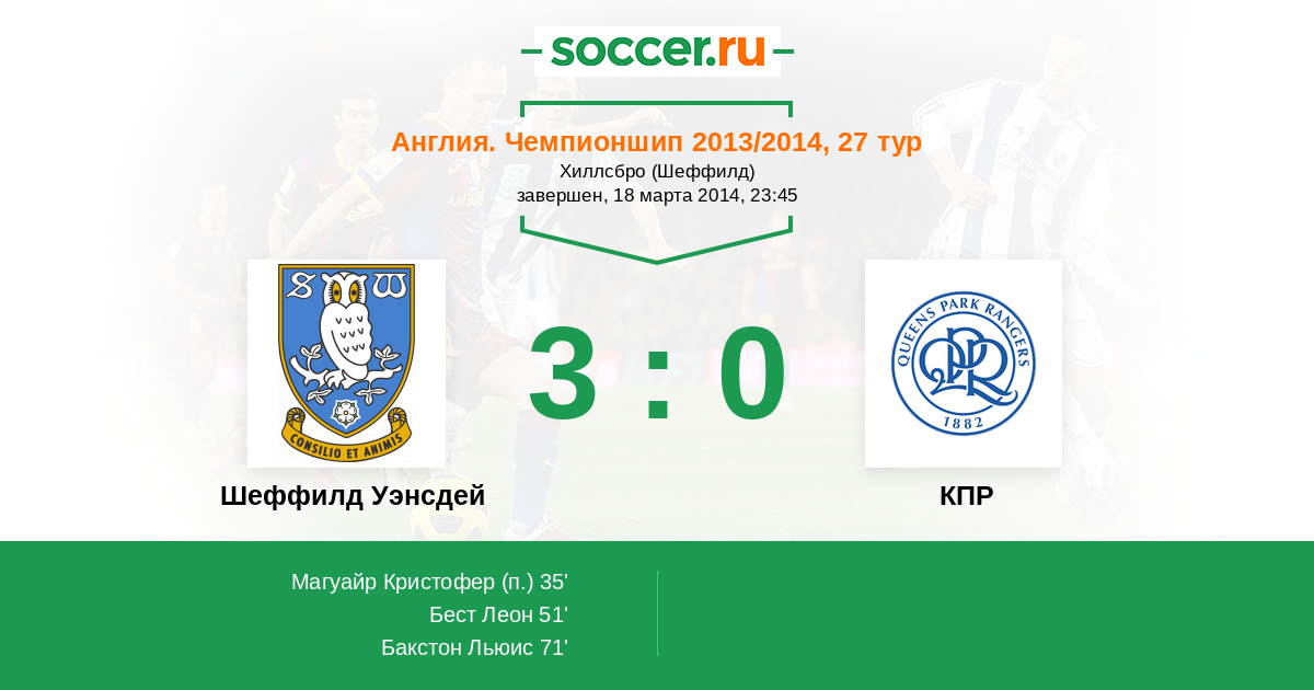 | Шеффилд Уэнсдей | КПР | |