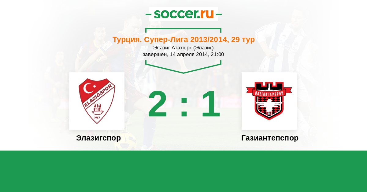 | Элазигспор | 2:4 | 0:0 | 2:4 |