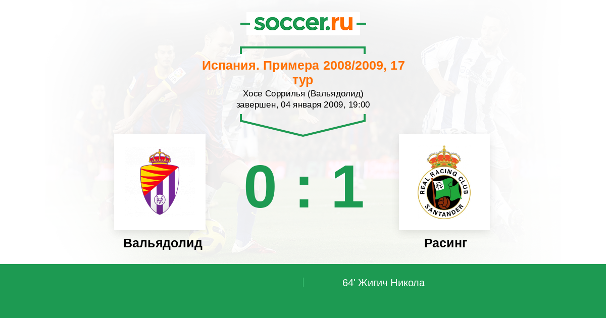 Вальядолид 2:1 Расинг