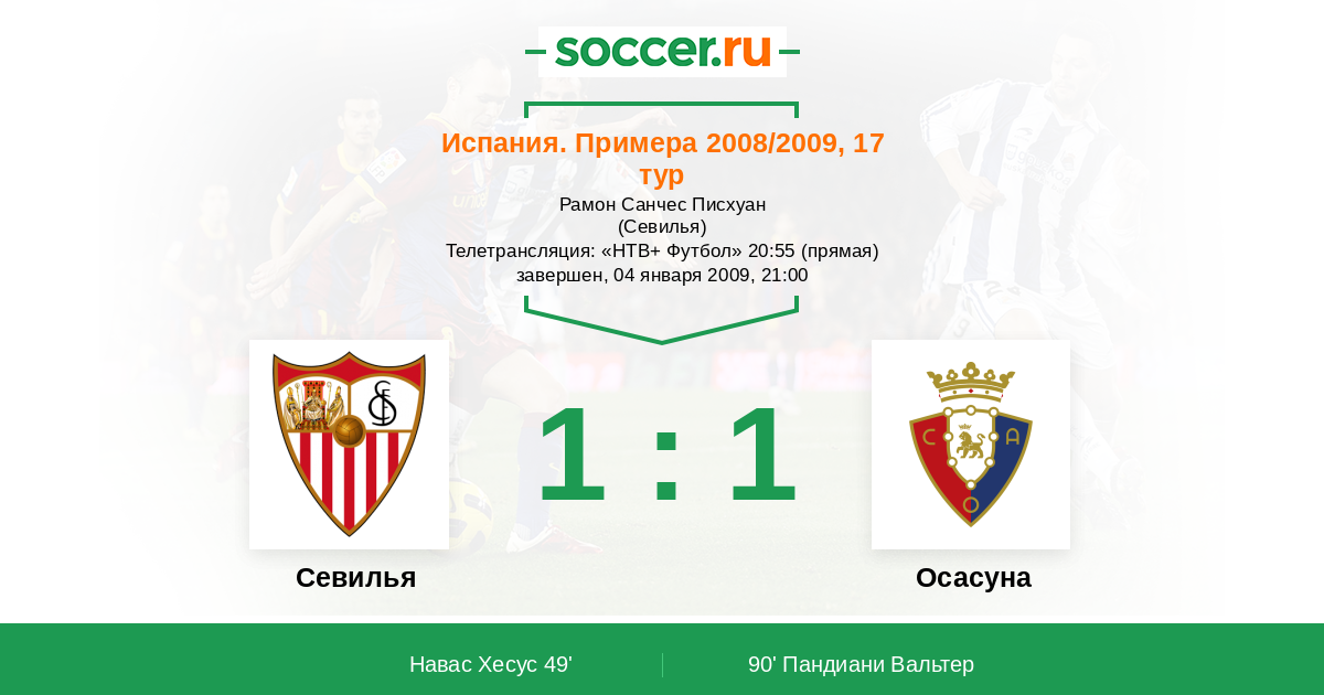 Севилья, Рамон Санчес Писхуан Телетрансляция: "НТВ+ Футбол" 20:55 (прямая)