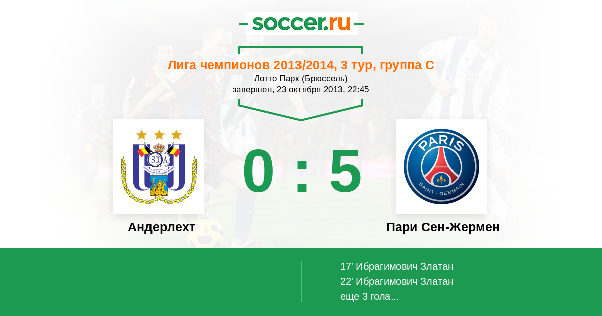 | Андерлехт | 1:10 | 0:4 | 1:6 |