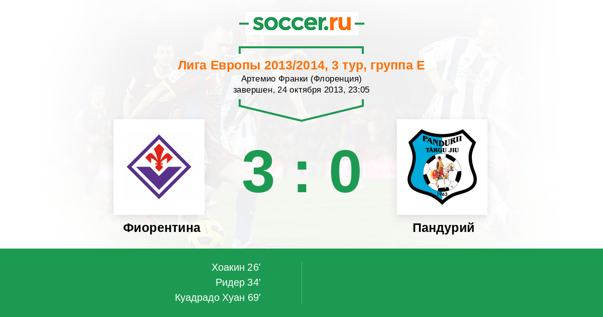 | Фиорентина | 2:1 | 0:0 | 2:1 |