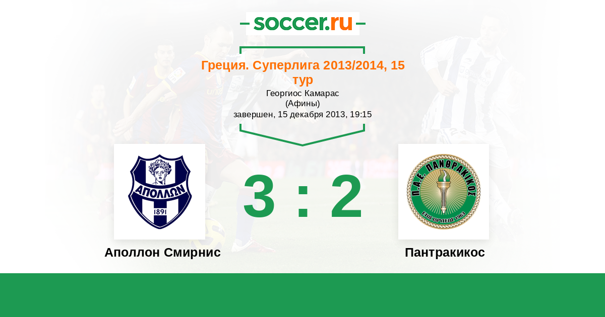| Аполлон Смирнис | 3:2 | 0:0 | 3:2 |