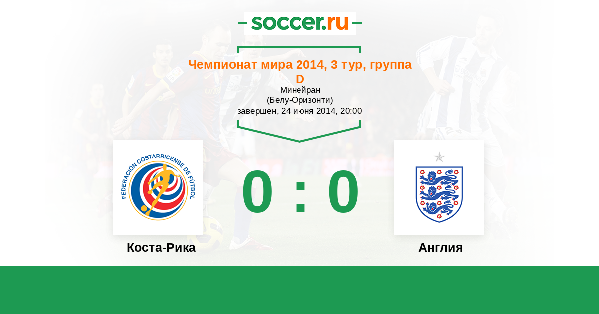 | Коста-Рика | 0:2 | 0:0 | 0:2 |