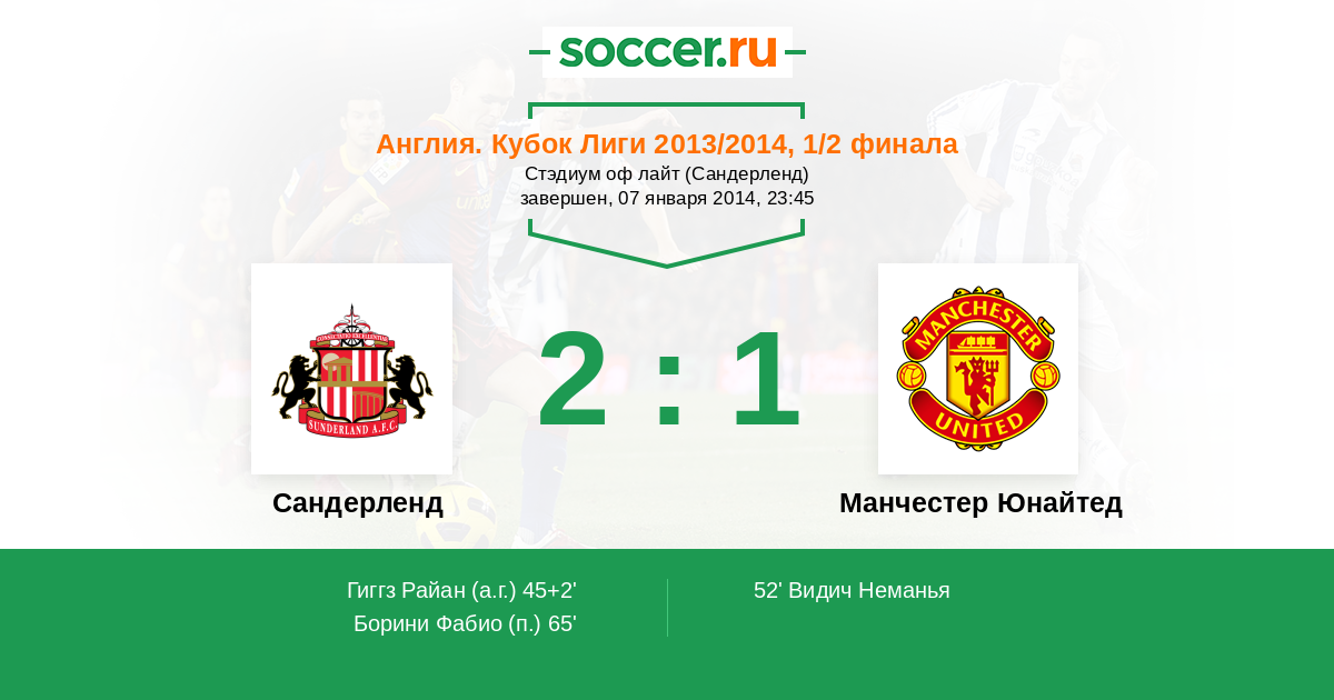 | Сандерленд | Манчестер Юнайтед | |