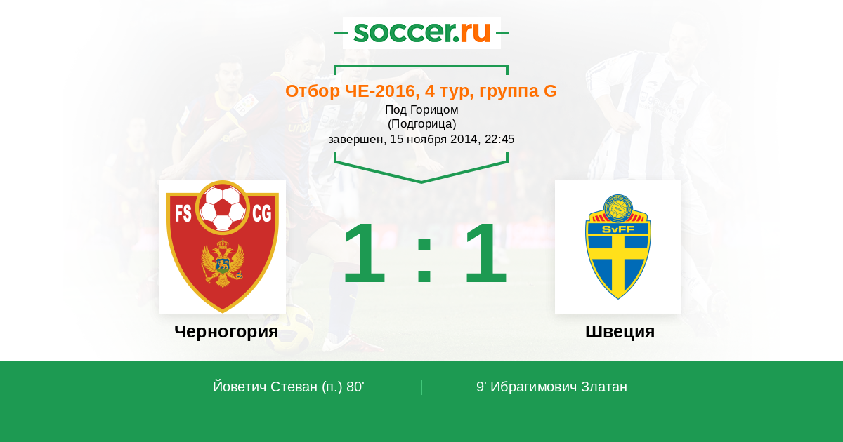 | Черногория | 1:3 | 0:0 | 1:3 |