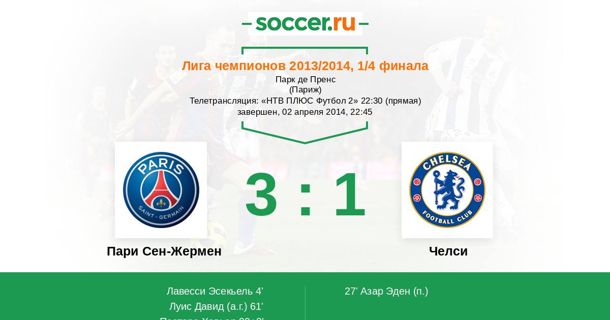 | Пари Сен-Жермен | Челси | |