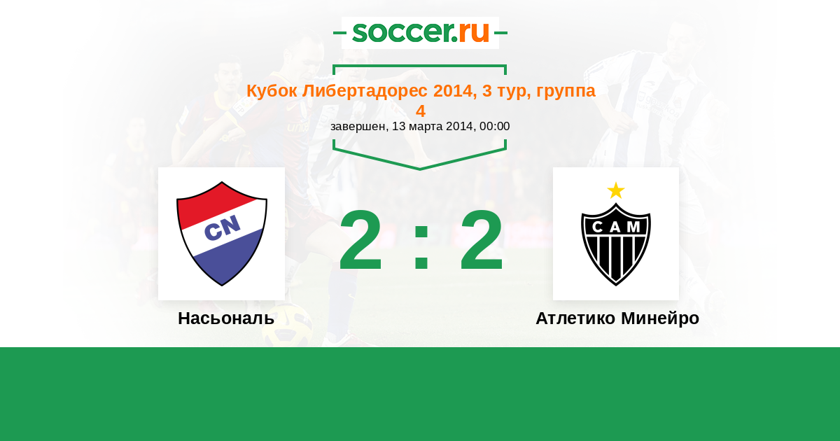 | Атлетико Минейро | 1:1 | 1:1 | 0:0 |