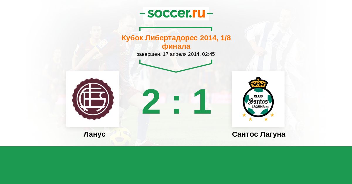 | Сантос Лагуна | 0:2 | 0:2 | 0:0 |