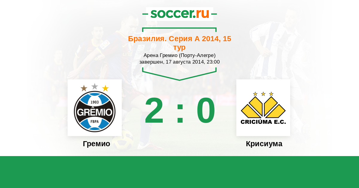 | Гремио | 16:12 | 4:7 | 12:5 |