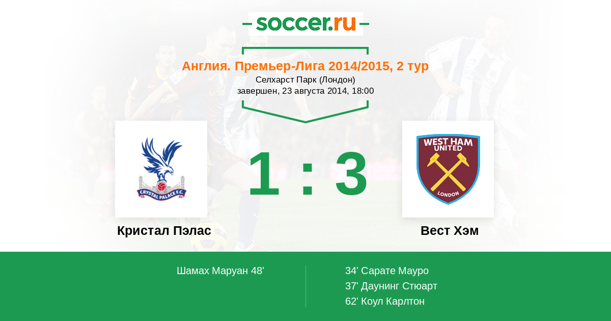 | Кристал Пэлас | 58:68 | 32:36 | 26:32 |