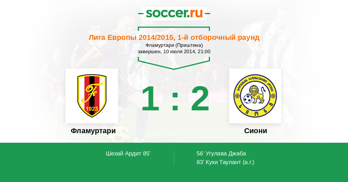 | Фламуртари | 3:2 | 0:0 | 3:2 |
