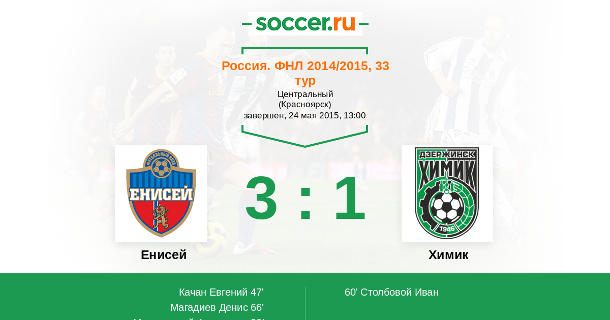 | Енисей | 4:2 | 1:0 | 3:2 |