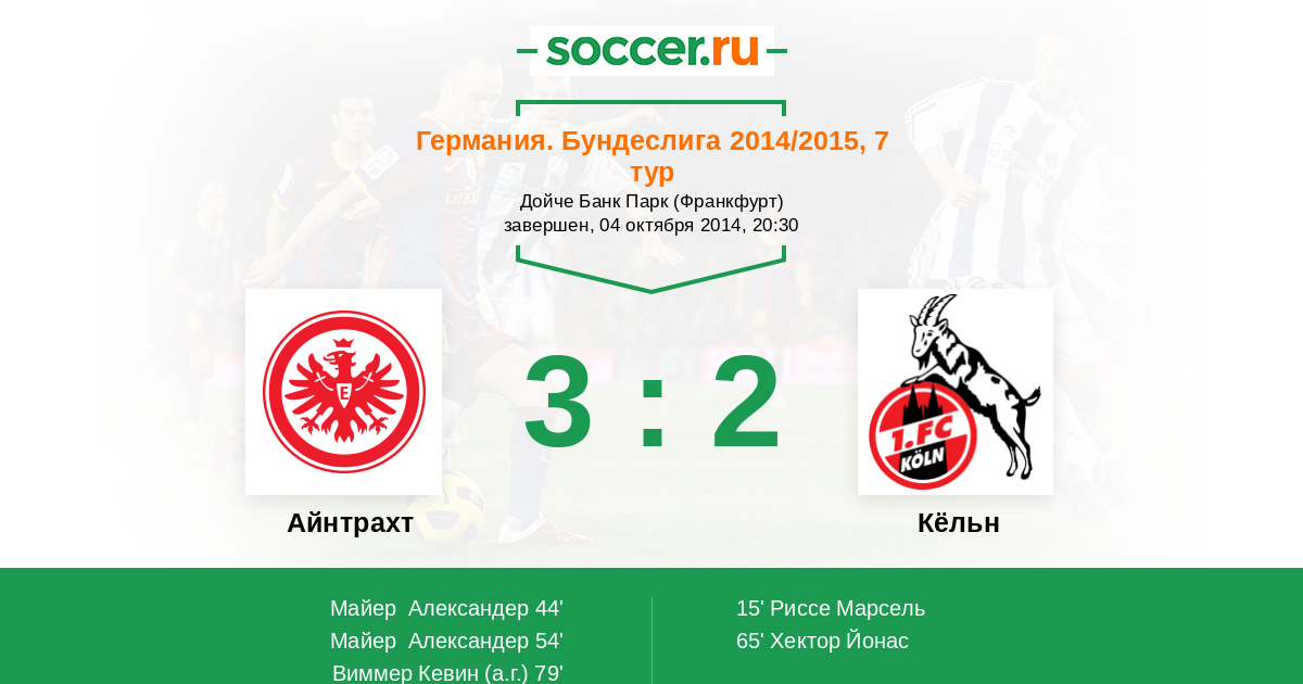 | Айнтрахт | Кёльн | |