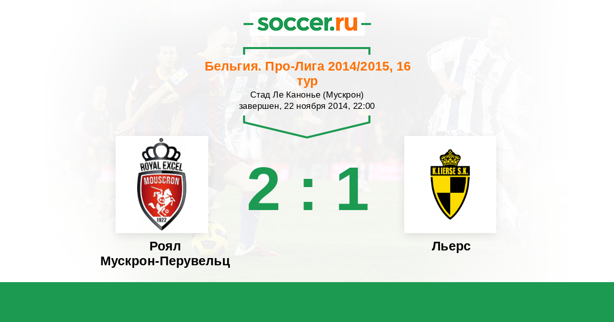 | Роял Мускрон-Перувельц | 11:5 | 3:1 | 8:4 |