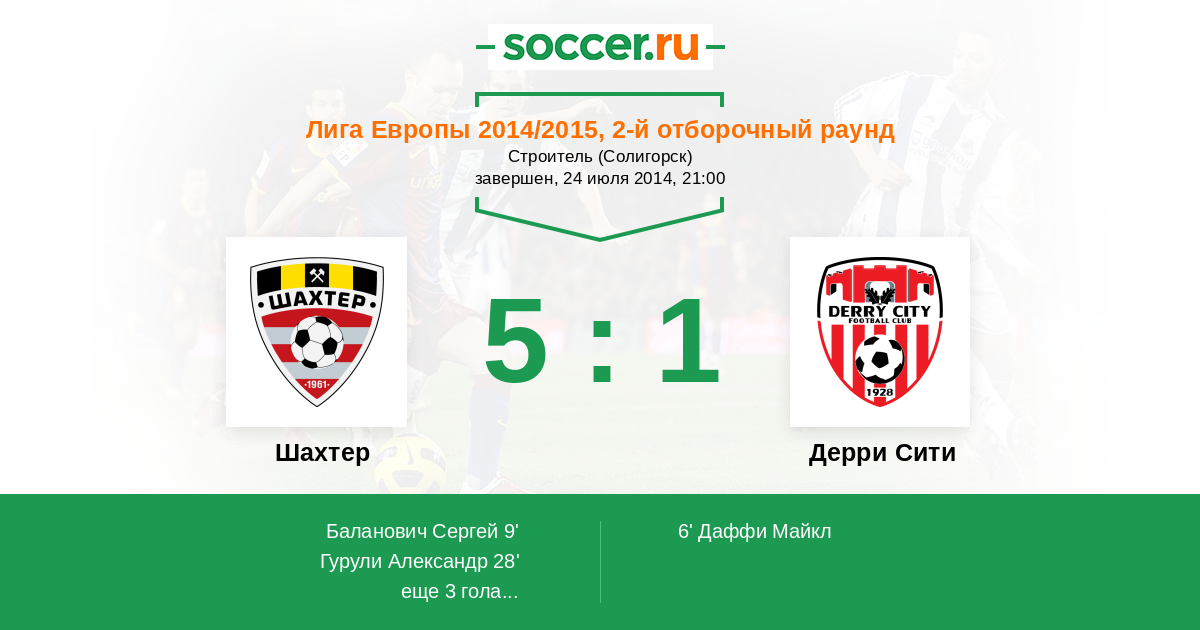 | Шахтер | Дерри Сити | |