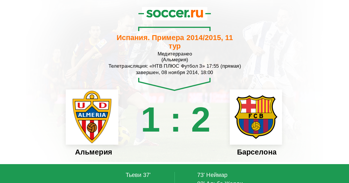 Альмерия, Медитерранео Телетрансляция: "НТВ ПЛЮС Футбол 3" 17:55 (прямая)