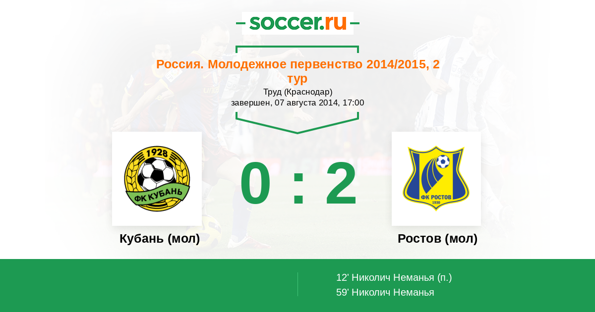 | Кубань (мол) | 10:21 | 6:12 | 4:9 |