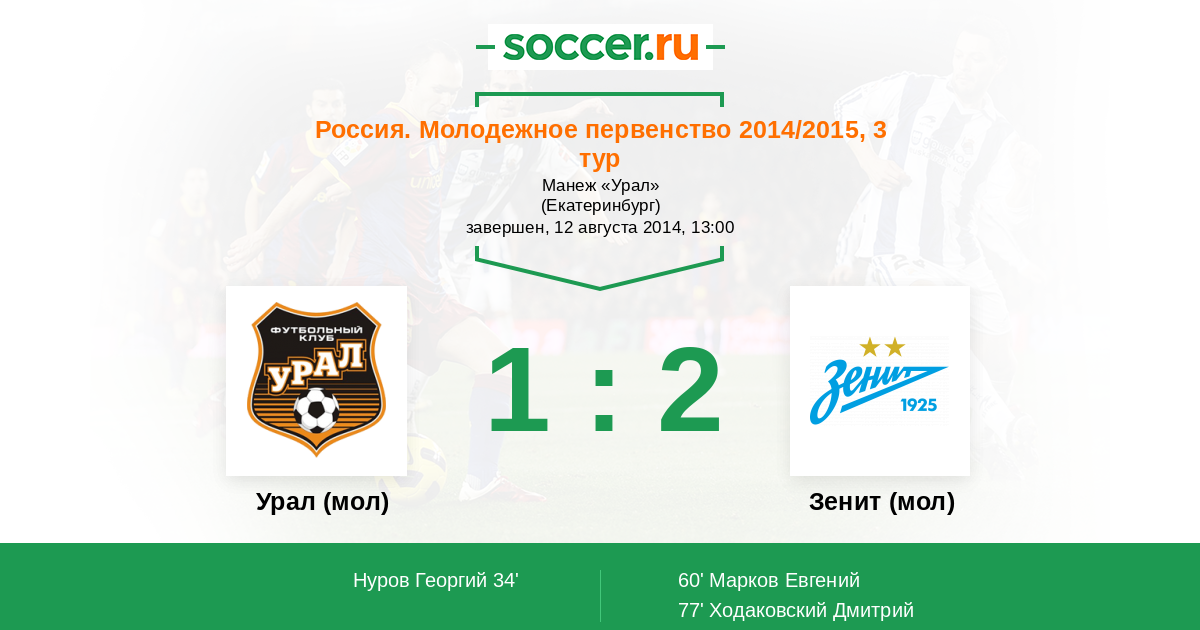 | Урал (мол) | Зенит (мол) | |
