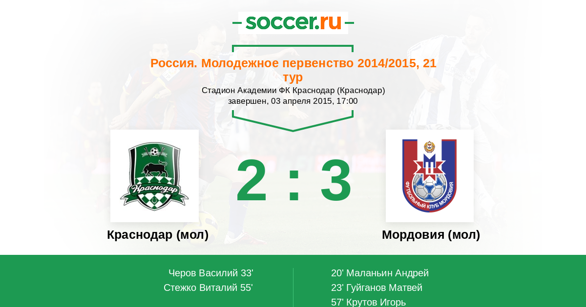 | Краснодар (мол) | Мордовия (мол) | |