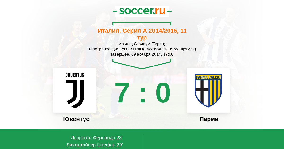 Турин, Альянц Стэдиум Телетрансляция: "НТВ ПЛЮС Футбол 2" 16:55 (прямая)