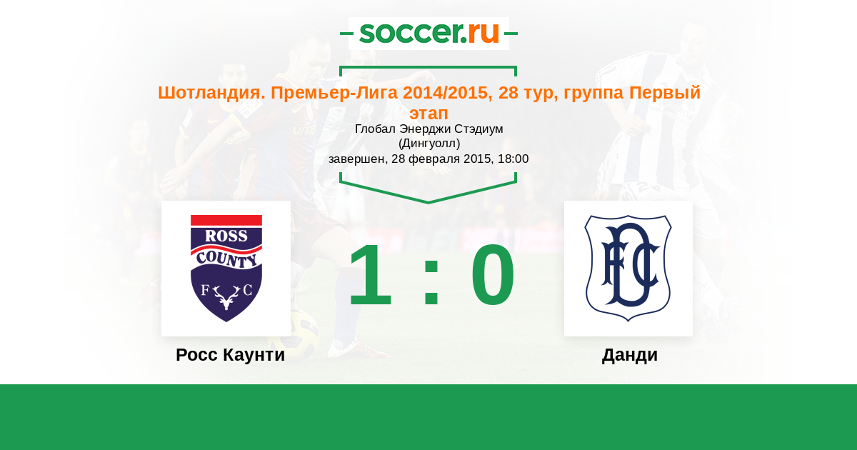 | Росс Каунти | 66:56 | 30:25 | 36:31 |