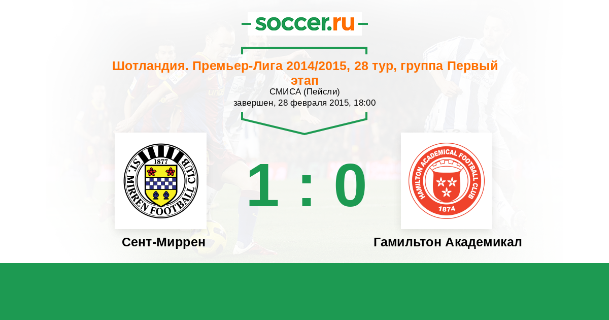 | Гамильтон Академикал | 63:44 | 28:15 | 35:29 |