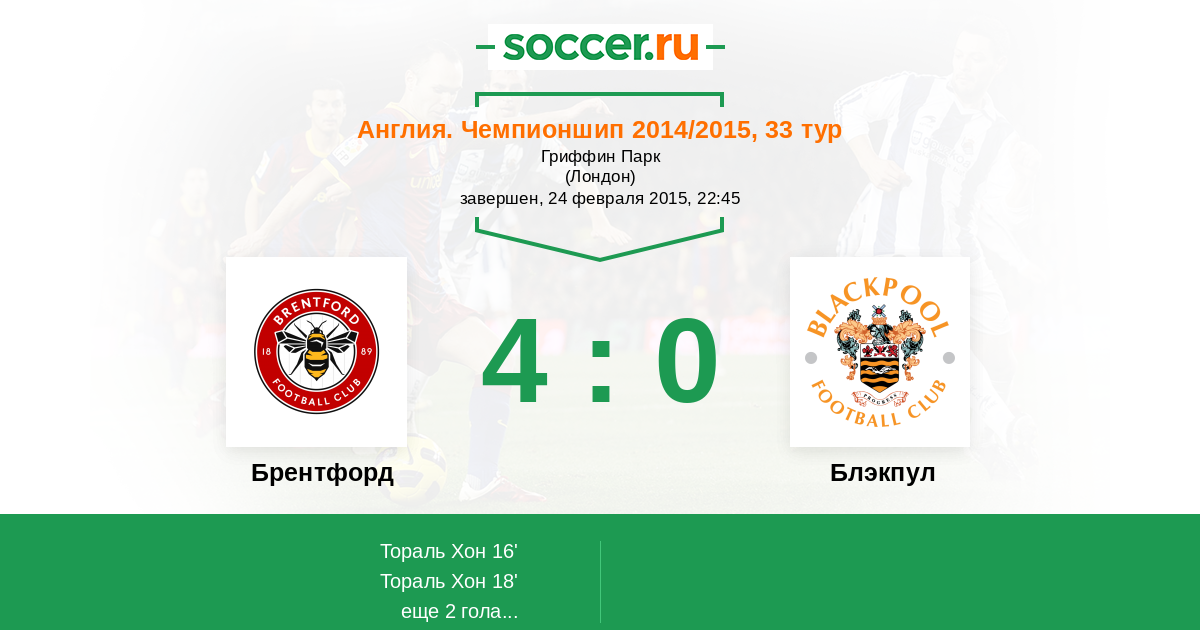 | Брентфорд | 2:1 | 0:0 | 2:1 |