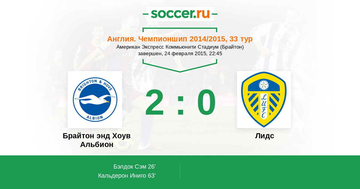 | Брайтон энд Хоув Альбион | 45:34 | 24:12 | 21:22 |
