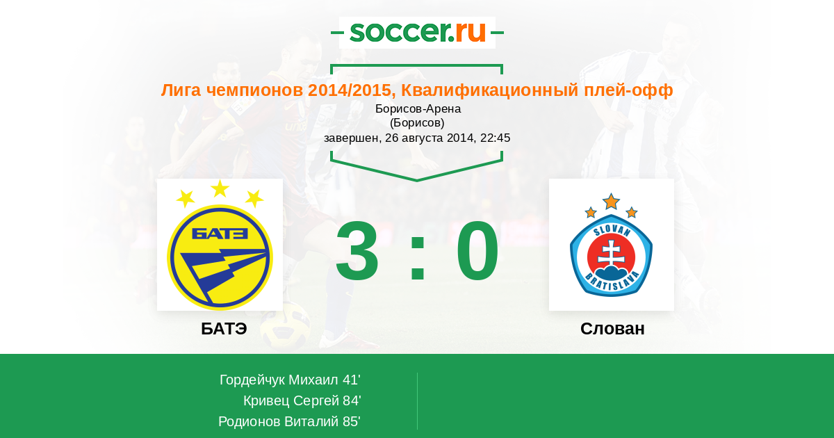 | БАТЭ | Слован | |
