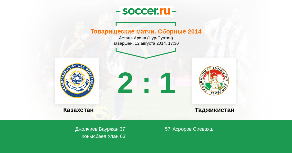 | Таджикистан | 1:3 | 0:1 | 1:2 |