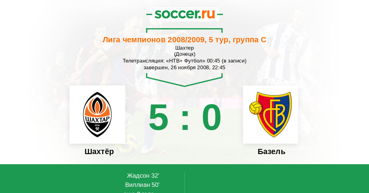 Донецк, Шахтер, зрителей: 14000 Телетрансляция: "НТВ+ Футбол" 00:45 (в записи)