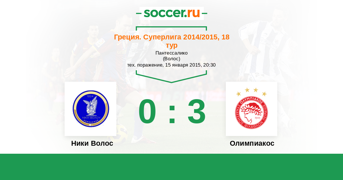 | Ники Волос | 1:3 | 0:0 | 1:3 |
