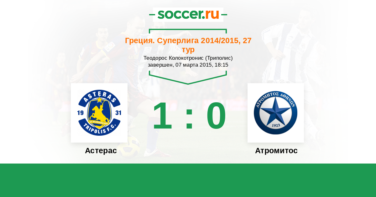 | Атромитос | 53:55 | 27:20 | 26:35 |