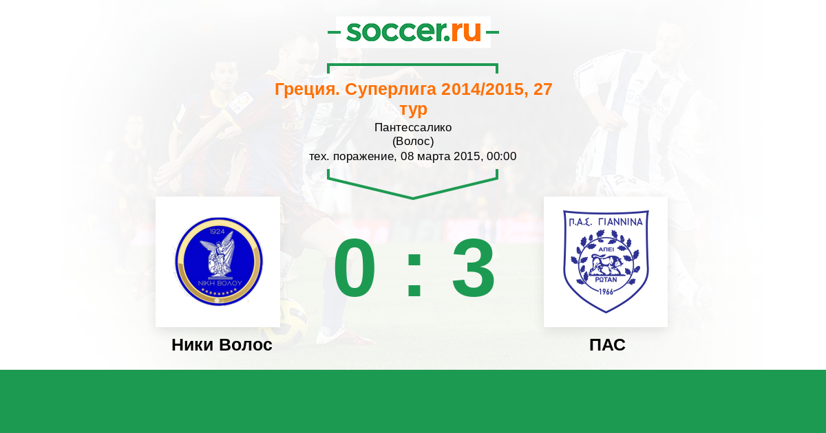 | Ники Волос | 0:4 | 0:0 | 0:4 |
