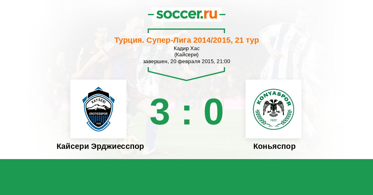 | Кайсери Эрджиесспор | 2:2 | 1:0 | 1:2 |