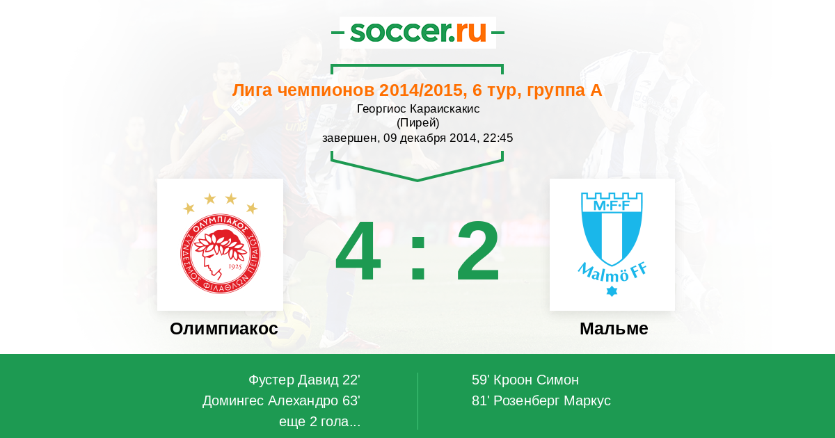 | Олимпиакос | 1:2 | 0:0 | 1:2 |