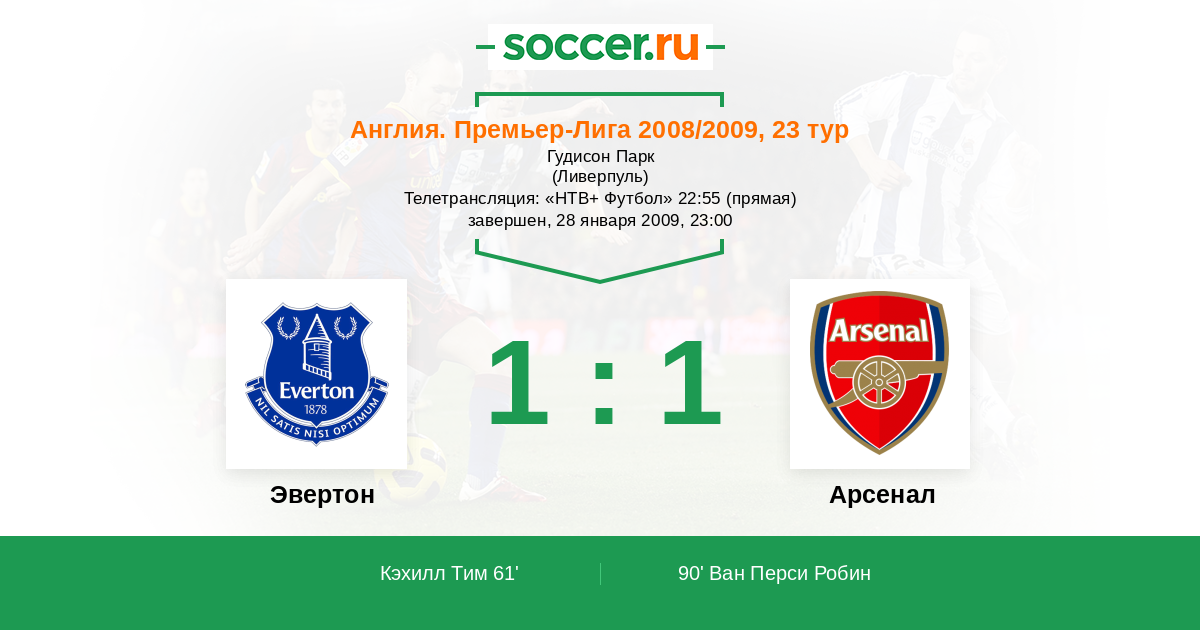 Ливерпуль, Гудисон Парк Телетрансляция: "НТВ+ Футбол" 22:55 (прямая)
