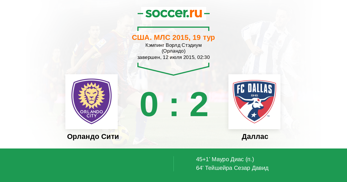 | Орландо Сити | Даллас | |